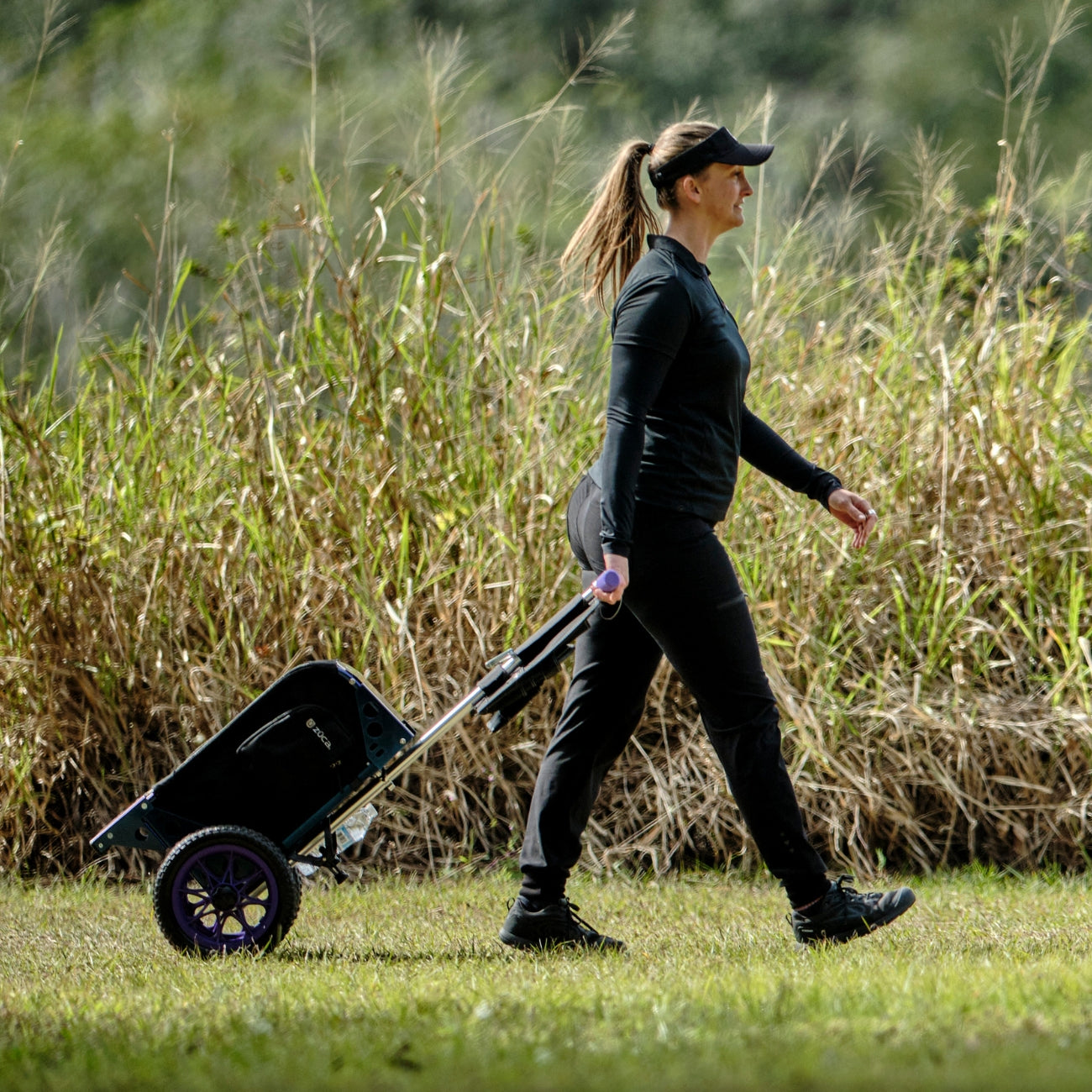 Introducing the ZÜCA Trekker LG Cart - Sarah Hokom Special Edition, designed for the disc golfer who demands both style and performance. Featuring a stunning chameleon metallic colorway that shifts between purple and blue, this cart is a true eye-catcher on and off the course. Inspired by Sarah's bold and dynamic approach to disc golf, this limited-edition cart reflects her signature flair and precision.